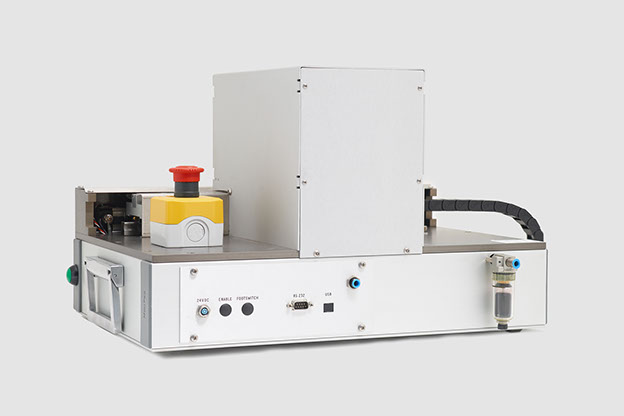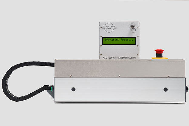 - Pneumatically operated press, compact self-contained unit suitable for bench-top placement.