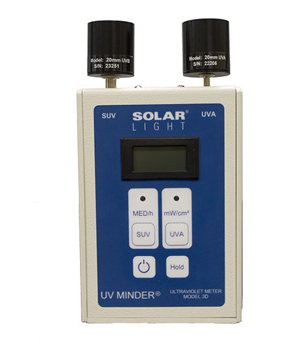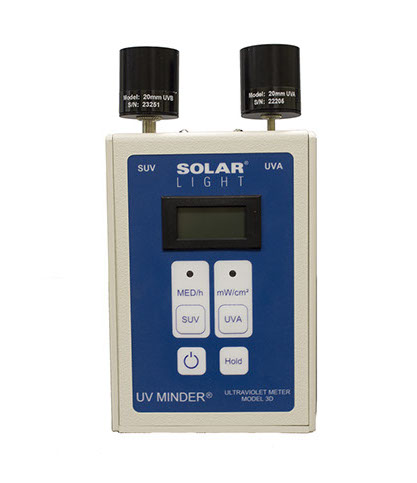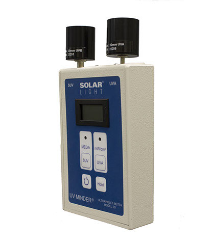 Model 3D UV Minder® Intensity Meter accurately measures the UVA and UVB spectra for SPF testing, cosmetics research, dermatology, environmental research, agriculture, and forestry.